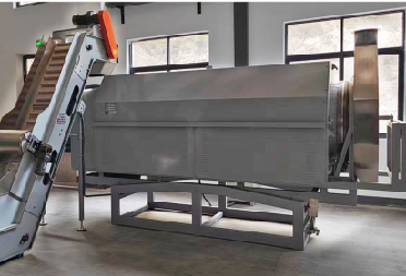 作業(yè)原理:茶葉經過提升機進入連續(xù)滾筒式提香機,通過滾筒中的遠紅外陶瓷加熱板及導葉筋進行受熱連續(xù)提香。